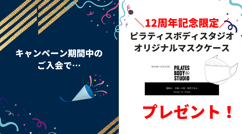 初月度 月会費割引・入会金無料キャンペーン・ピラティスボディスタジオオリジナルノベルティグッズプレゼント!!