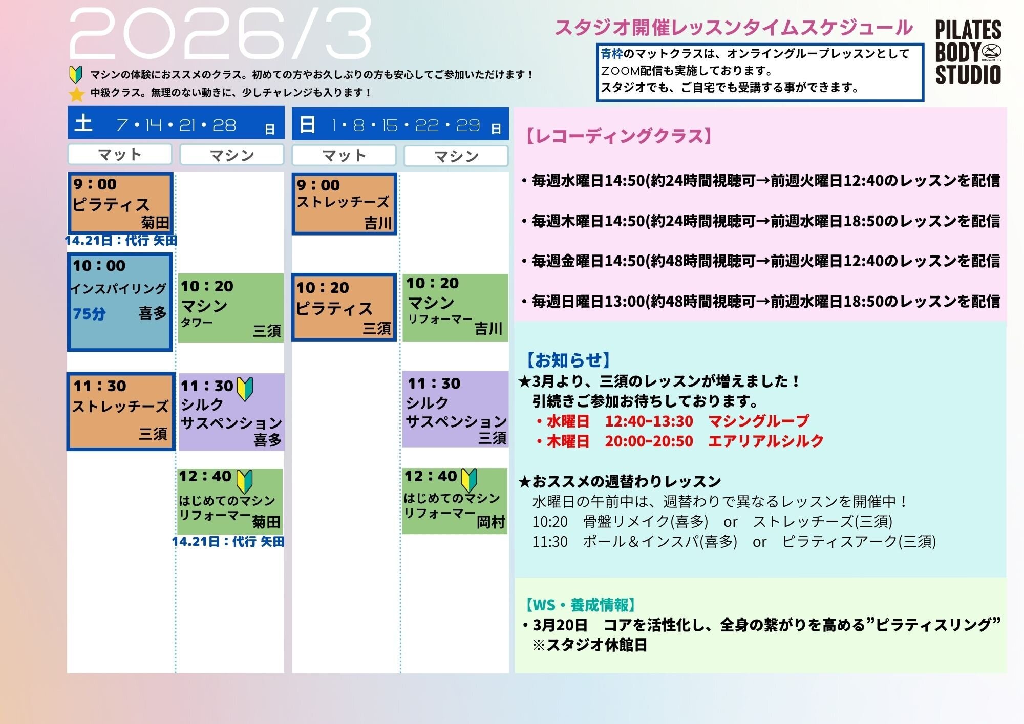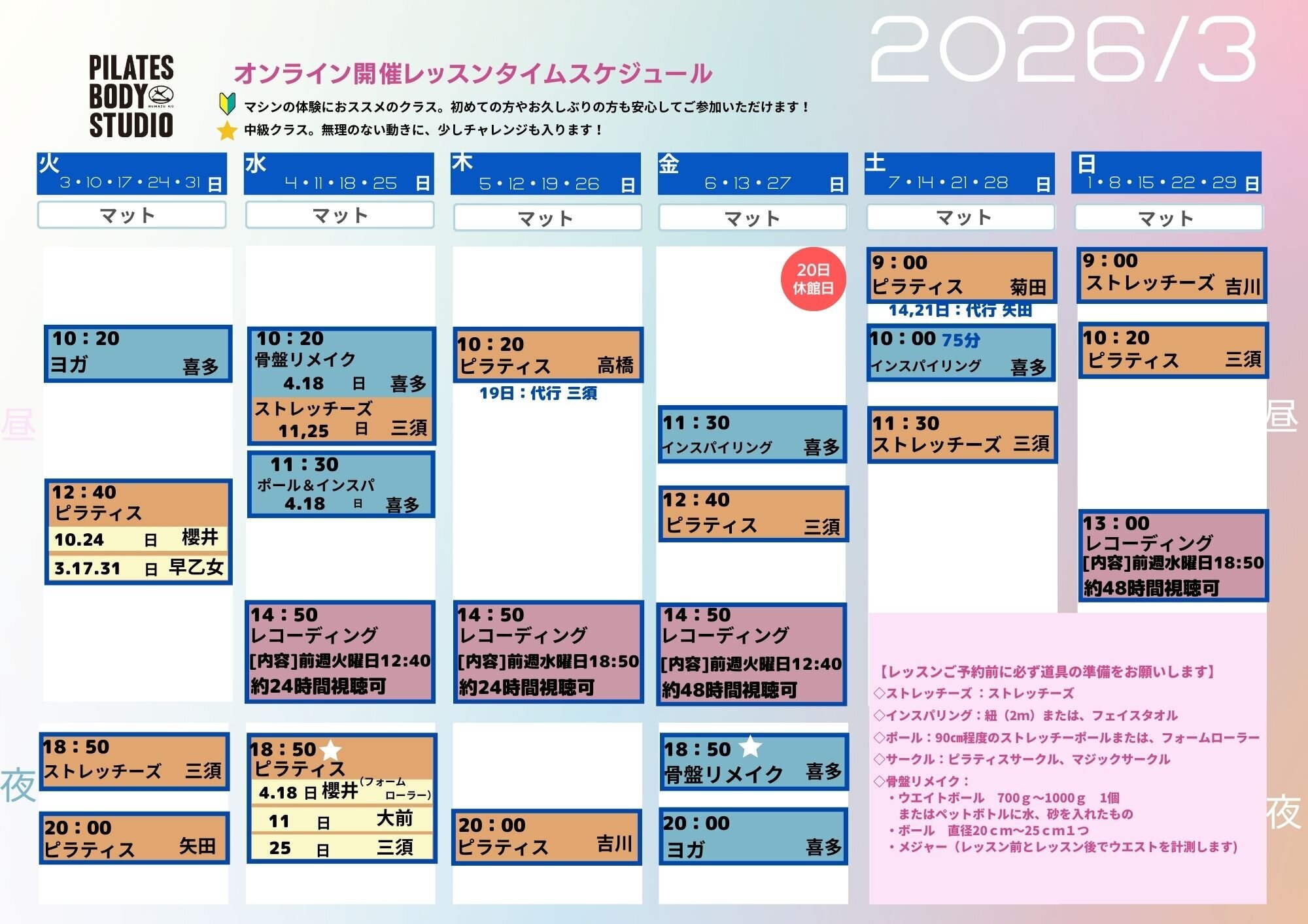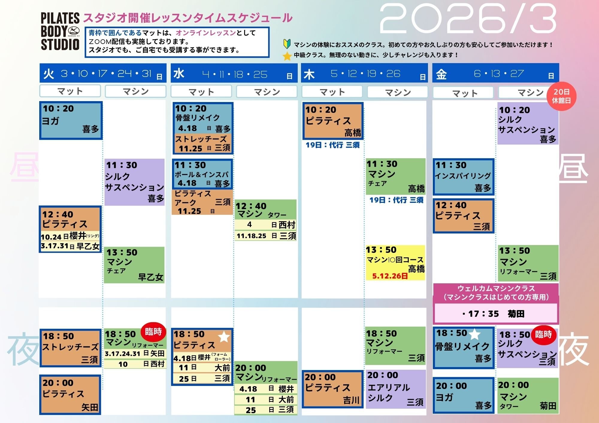 2026年3月のタイムテーブル