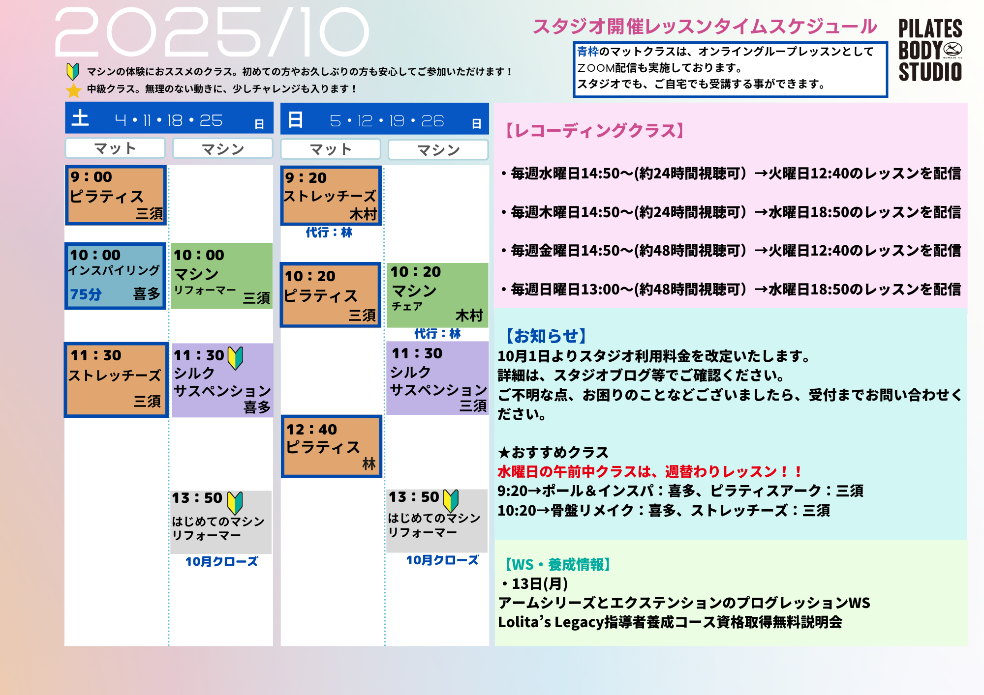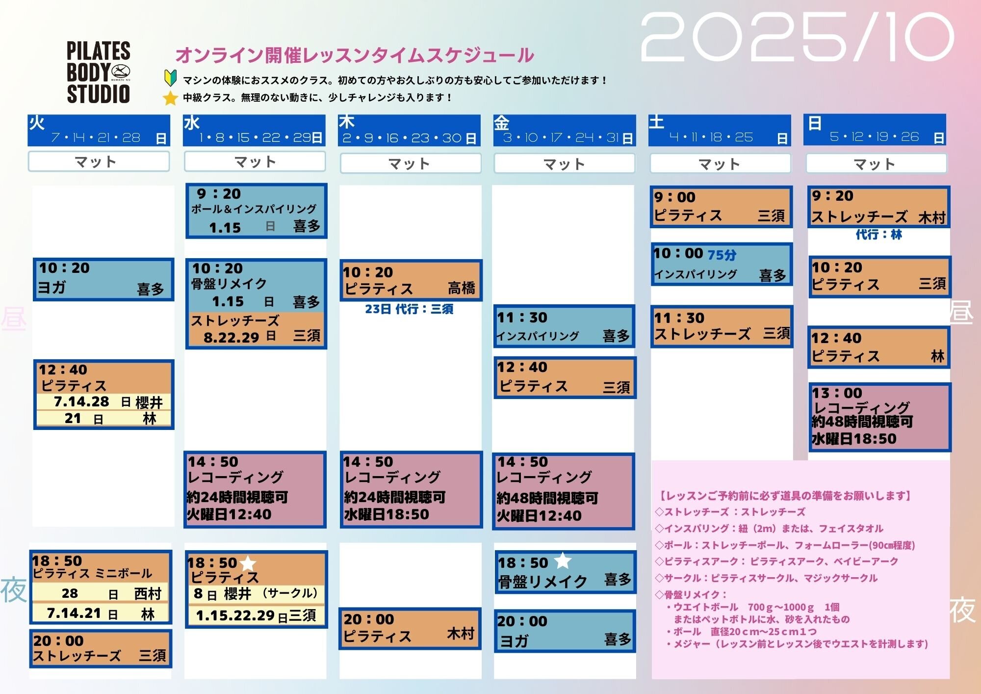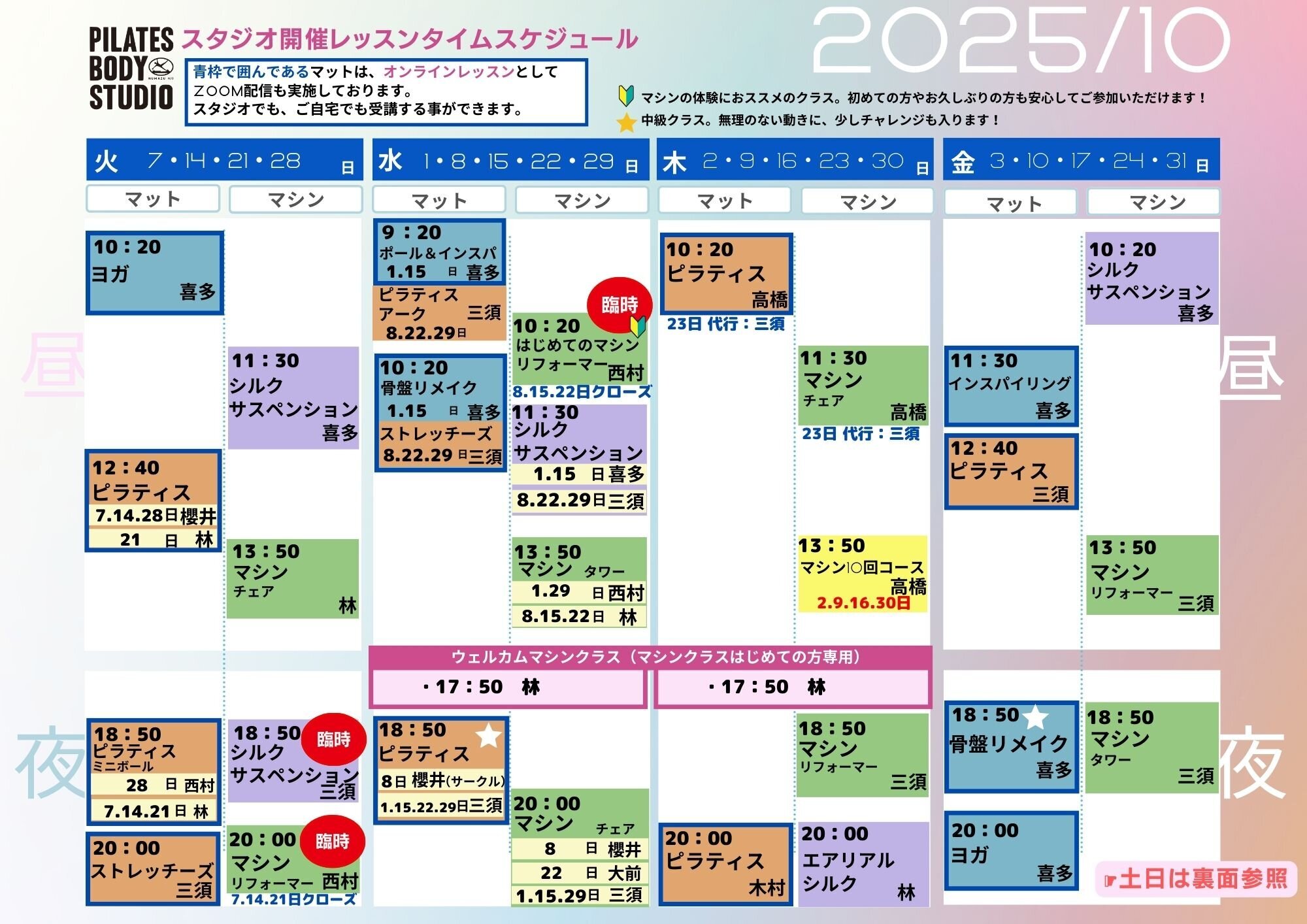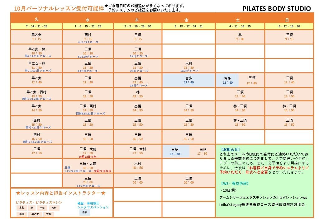2025年10月のタイムテーブル