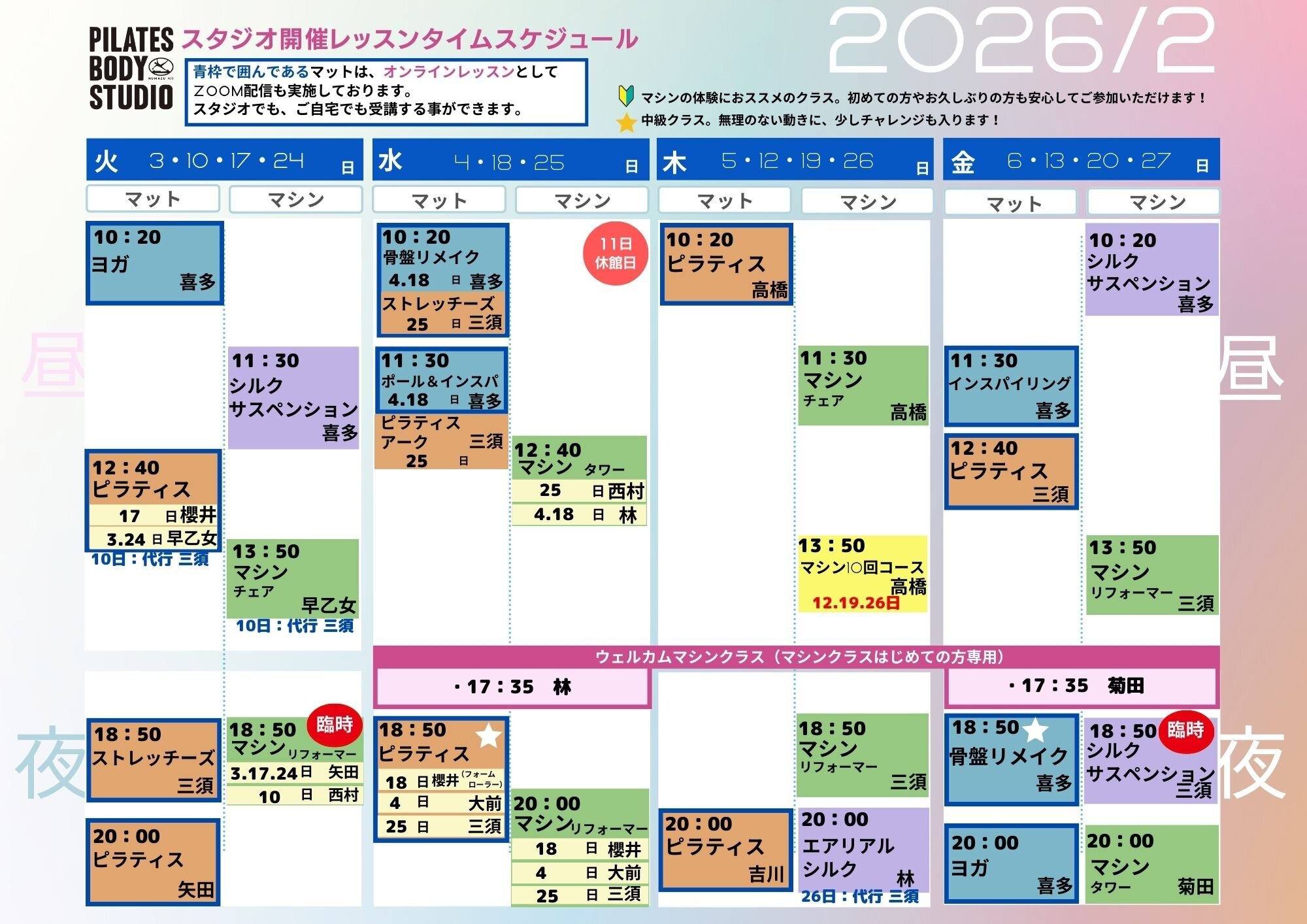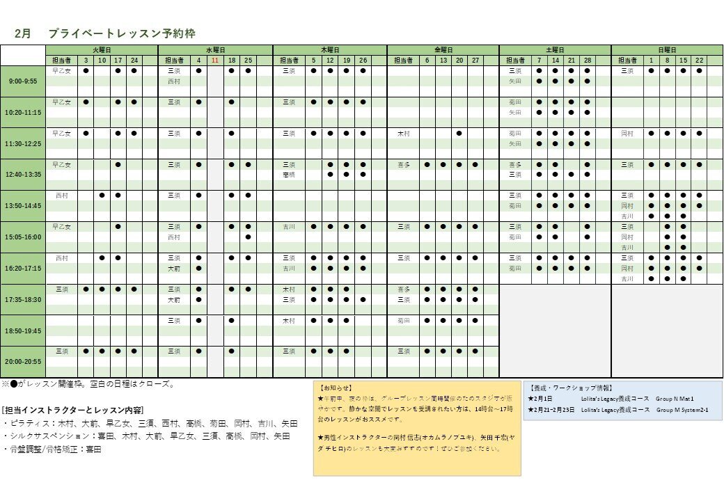 2026年2月のタイムテーブル