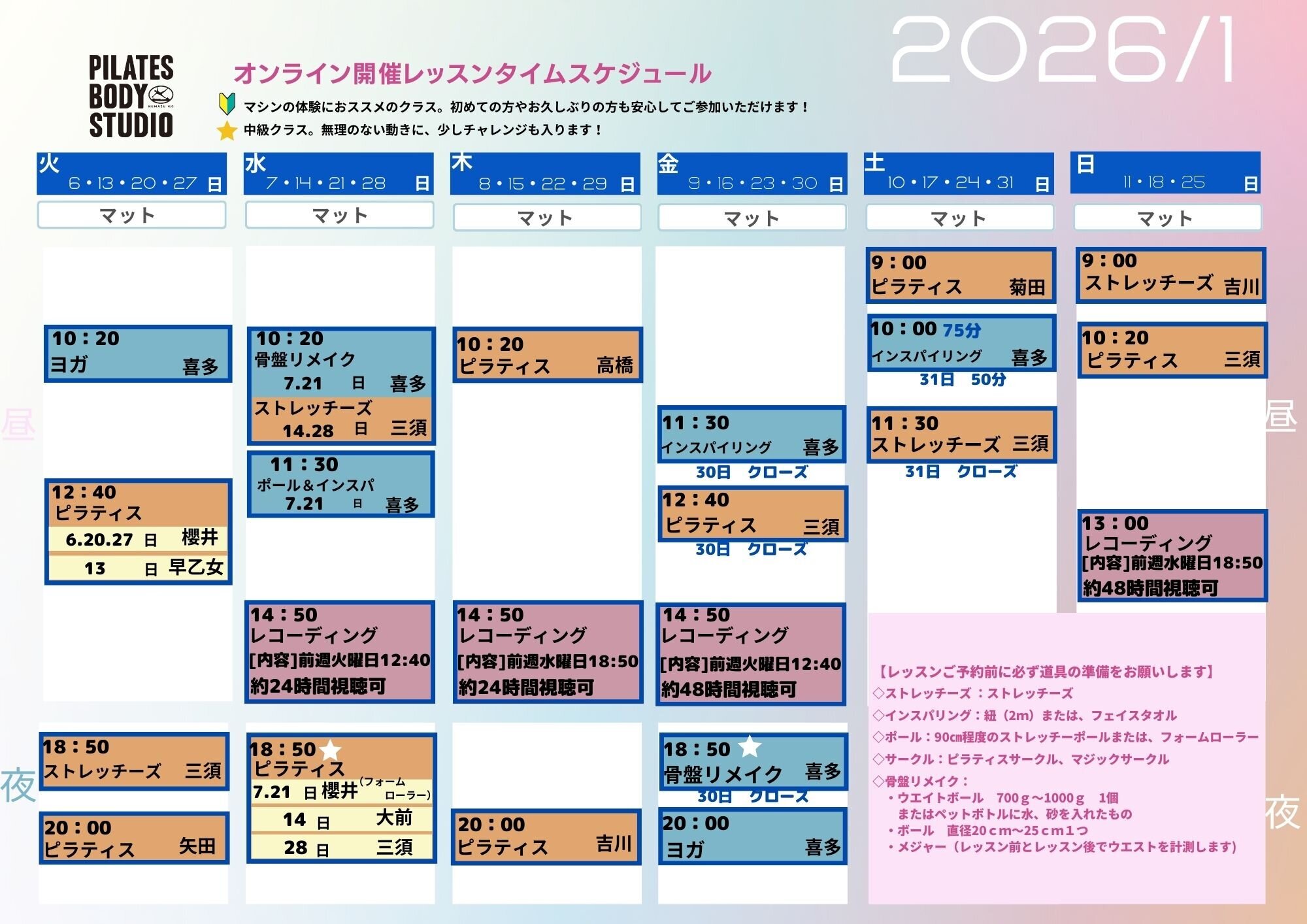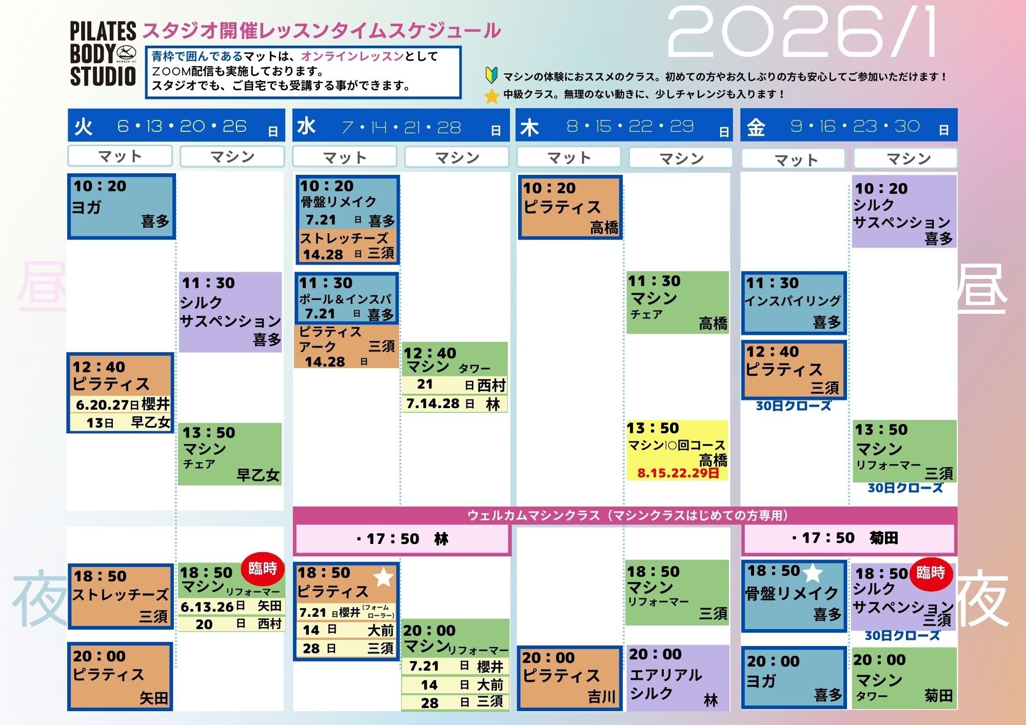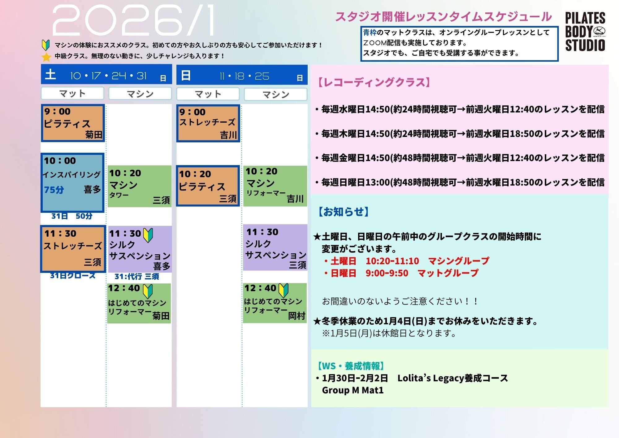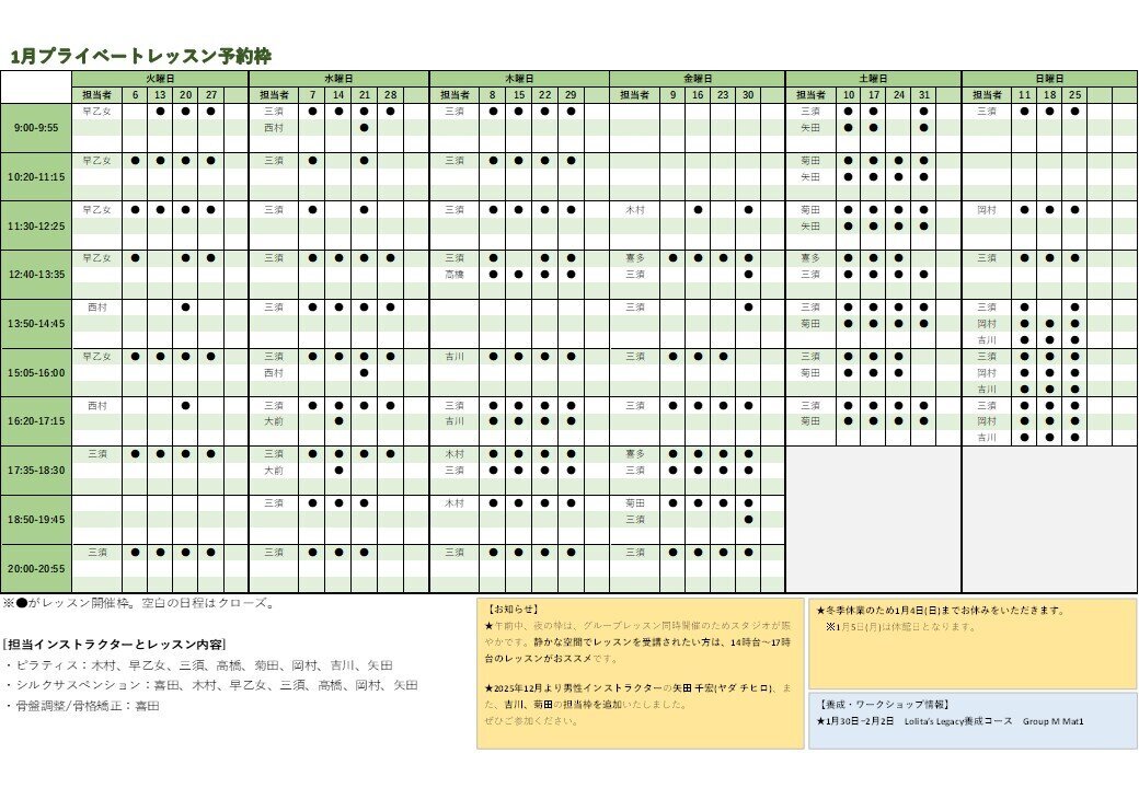 2026年1月のタイムテーブル