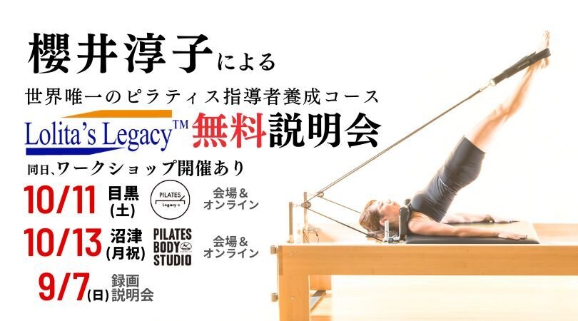 この度、第二世代ピラティスティーチャー櫻井淳子による、全てのレベルの方、全てのピラティス愛好家向けの特別ワークショップ...